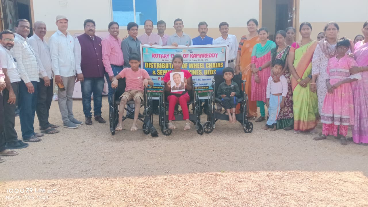 • Donation Details Prasanna – Wheelchair With Commode Distribution During the community service program held on 19 November 2025 under Nehru’s “Educate, Empower, Enlighten” initiative, Prasanna, a specially-abled child, received a Wheelchair with Commode to support mobility, comfort, and daily care needs. This valuable assistance was made possible through the generous sponsorship of Sri Radhakrishnan Vilayannur, whose contribution is helping Prasanna and the family experience greater ease and support in their everyday life. The event was graced by distinguished guests including Sri Dinesh garu (DM, RTC, KMR), Smt Dr Pramila (DWO, KMR), Smt Dr Lalitha (Assistant Professor, Telangana University), Sri M. Jaipal Reddy (Assistant Governor, Rotary Club), Sri Shankar (President, Rotary Club) along with several Rotary officers, Sri G. Aravind (PFI Vice Chairman), Sri K. Joseph (MEO, SS Nagar), and other supporters, trainers, and volunteers who contributed to the success of this meaningful initiative.